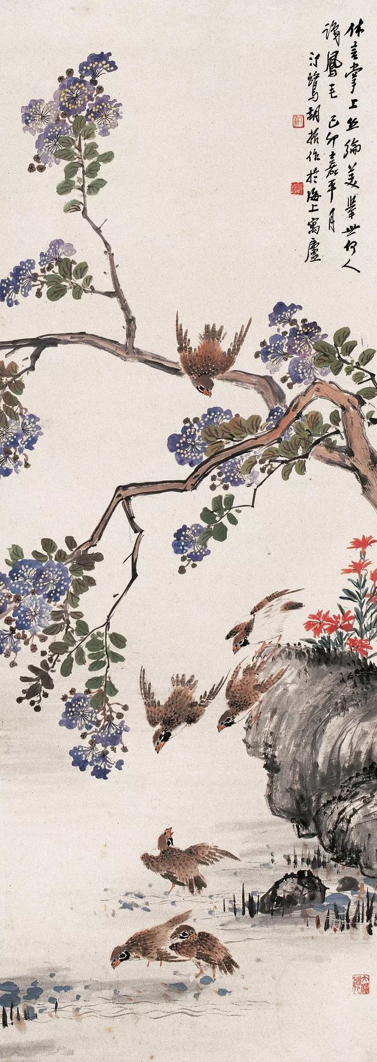 也许是生计所迫,也许是书生意气,鸿鵠之志,在潮湿陰冷的陋室中,他拼命画,忘情画,以至他晚年得了严重的哮喘病。人家十多年也摸不到门,他凭自身的弘毅、胆魄、才华,游悠于夏圭、巨然、元四家、石豀、石涛之间,撷取任伯年、恽南田、八大山人、青藤、白阳之气韵充实壮大自己。然而,他又不是轻易得来,学而悟,敏而行,扬长避短,为我所用,自画面目,姓胡名汀鹭。他认为:这样方对得起老师和自己!